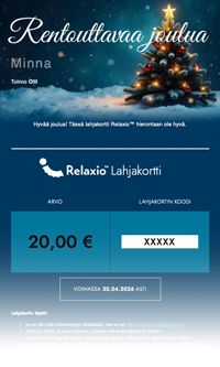 Etsitkö yllätyslahjaa metsämiehelle, hemmottelulahjaa naisystävälle, syntymäpäivälahjaa ystävälle tai helppoa ideaa pikkujoulupakettiin? Relaxio™ hierontalahjakortti on lahjapulmien ratkaisija.